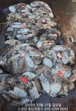 10/24 신조선 [군산 닥스호]_갑오징어 종일반 조황_주중여유자리 있습니다. 25년 10월 24일 (금) 군산 닥스호 불금 갑오징어 먹물 파티아침에 너울이 있어서 초반에는 다들 고전 그리고몇분은 살짝 멀리 올라오고 조금 휴식 하시고 다들너울을 적응하기 시작 하면서 갑오징어 랜딩 하시네요!!사이즈에 조사님들 아주 좋아하시네요!! 신발짝 사이즈도부터 알뜨랑은 몇몇마리 나오긴 하네요!알뜨랑 사이즈 몇몇분들은 바다로 돌려 보내주시네요!오늘 잘잡으신분들은 왕망태기 만들고 풍족하게 잡고못잡으신분은 6마리,,, 역시 경험 차이가 크네요,,,조사님들 배에서 내린후 꼭 얼음 구매하세요!!!!!!!!필독!!! 꼭 꼭 지켜 주세요!!!!!!!!신분증 운전면허증 필히 지참!!(모바일 신분증 가능 사진은X)명부 작성 시 천천히 정확하게 글씨 예쁘게 작성!!!(작성 시 글씨 못 알아보면 출조점 다시 와서 재작성!)글씨를 못 알아봐서 해경에서 전화 오고 출조 지연!!!!!흡연하시는 분들은 옆에 분들 피해 안 가게 조심히!!!(비흡연자분들을 배려해 주세요!)왕눈이에기 보다는 조금 더 투자해서 좋은에기 구매!!(출조점에서 판매하는 좋은에기들 구매! 요즘 대세 세네!) ■ 예약문의 : 063-466-6565 010-9774-1551■ 오시는길 : 전라북도 군산시 새만금북로277(오식도동 1002)■ 서군산낚시 실시간 예약 바로가기 : http://seo.sunsang24.com/■ 서군산낚시 밴드 바로가기 : https://band.us/band/78646704