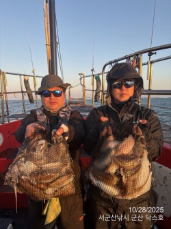 25년 10월 28일 (화) [군산 닥스호] 갑오징어 마무리 조황 25년 10월 28일 (화) 군산 닥스호 갑오징어 마무리 조황아침에 너울이 있어서 초반에는 고전 하시다가 너울이 생각보다 빠르게 죽으면서 조사님들 갑오징어 팍팍 신나게 잡아 주셨습니다!!!!!사이즈도 산란갑 사이즈들이 나오니 조사님들 좋아하시네요!!역시 갑오징어는 경험에서 차이가 많이 나네요!!!오늘은 많이 잡으신분들 위주로 들고 찰칵!!!!29일(수) 닥스호 우럭 출조 합니다!!! 오랜만에 우럭 손맛 즐기러 가시죠!!!!!조사님들 배에서 내린후 꼭 얼음 구매하세요!!!!!!!!필독!!! 꼭 꼭 지켜 주세요!!!!!!!!신분증 운전면허증 필히 지참!!(모바일 신분증 가능 사진은X)음주 절대 절대 금지!!!!(해경 단속이 엄청 심해요,해경 단속 걸리면 벌금!)명부 작성 시 천천히 정확하게 글씨 예쁘게 작성!!!(작성 시 글씨 못 알아보면 출조점 다시 와서 재작성!)글씨를 못 알아봐서 해경에서 전화 오고 출조 지연!!!!!흡연하시는 분들은 옆에 분들 피해 안 가게 조심히!!!(비흡연자분들을 배려해 주세요!)왕눈이에기 보다는 조금 더 투자해서 좋은에기 구매!!(출조점에서 판매하는 좋은에기들 구매! 요즘 대세 세네!!) ■ 예약문의 : 063-466-6565 010-9774-1551■ 오시는길 : 전라북도 군산시 새만금북로277(오식도동 1002)■ 서군산낚시 실시간 예약 바로가기 : http://seo.sunsang24.com/■ 서군산낚시 밴드 바로가기 : https://band.us/band/78646704